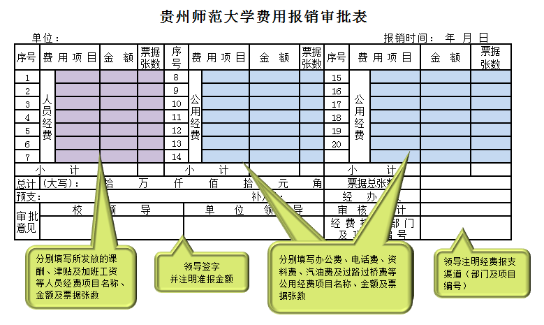 《费用报销审批表》填写图示